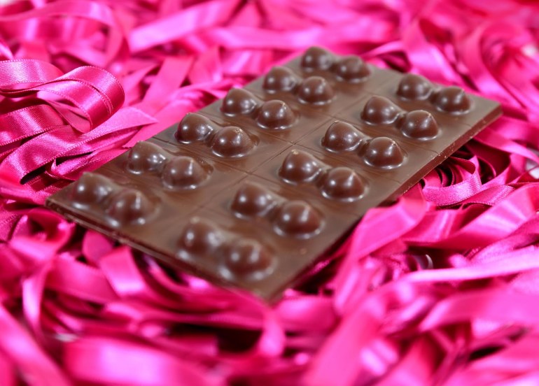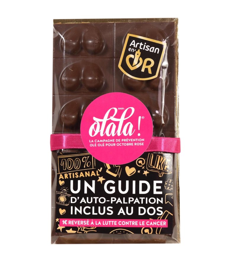Afin d’attirer l’attention sur le sujet et de faire le buzz, notre guide est accompagné d’une tablette de chocolat artisanal, fabriqué localement représentant une poitrine de femme.