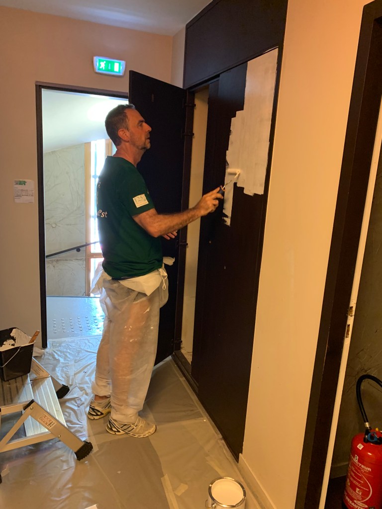 L’équipe commerciale et le démonstrateur du Sud Est ont souhaité apporter leur aide en réalisant eux-mêmes les travaux en compagnie de l’équipe de la maison Ronlad Mc Donald ! C’est donc avec beaucoup d’enthousiasme, d’humour et de générosité que l’équipe s’est rendue sur les lieux et a pu remettre de la couleur sur les murs pour améliorer le cadre de vie de ces familles qui vivent parfois des moments très difficiles !