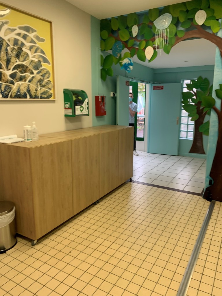Souvenez-vous l’idée était de rendre le hall plus chaleureux et accueillant pour les enfants arrivant dans ce centre chaque jour !