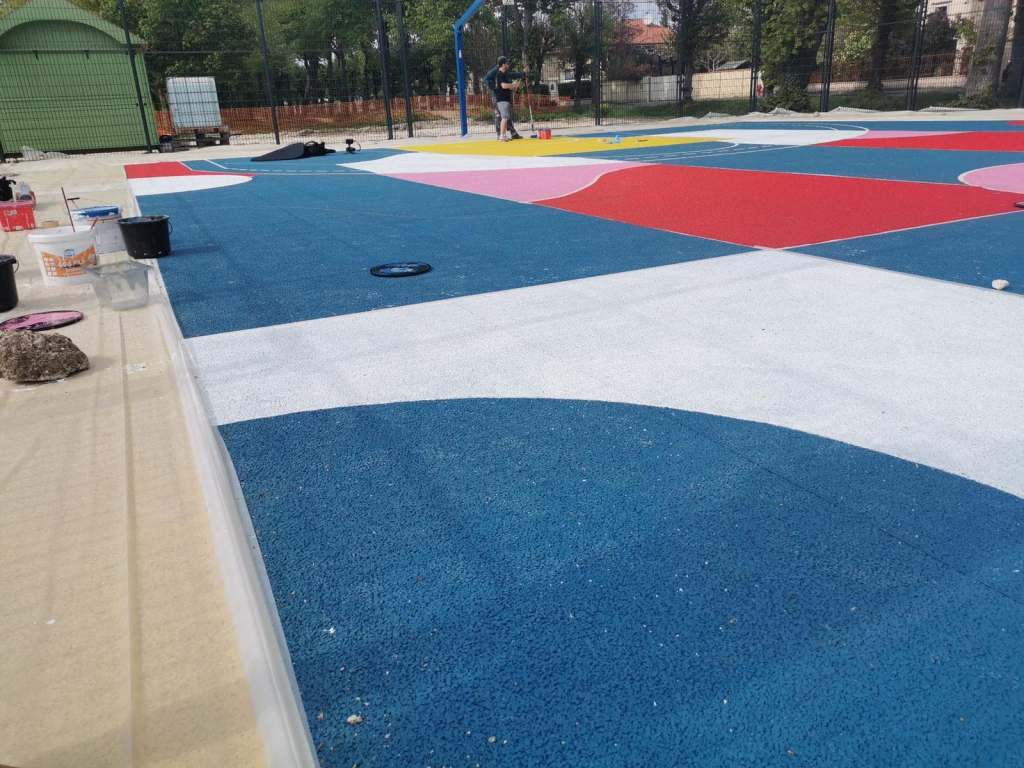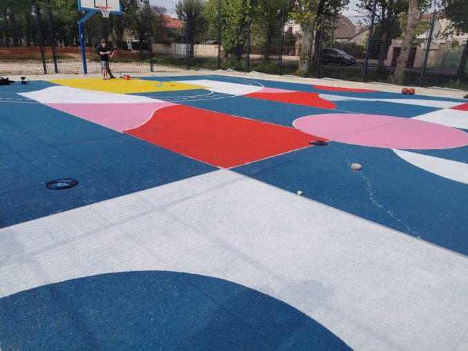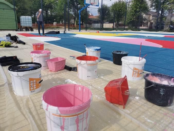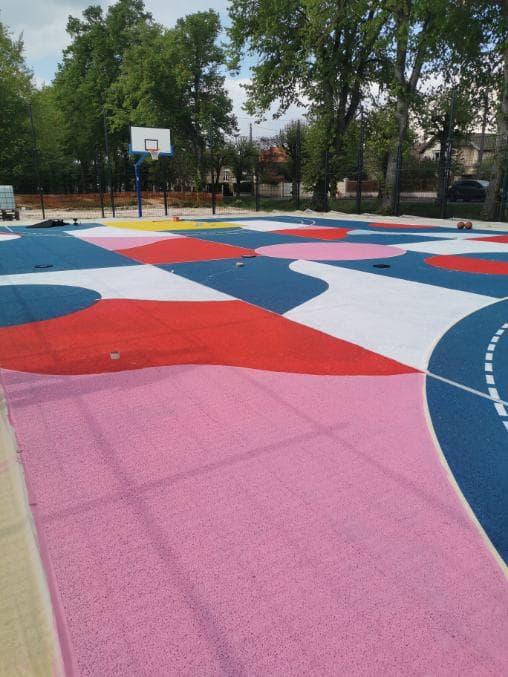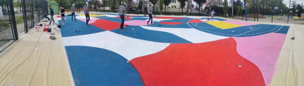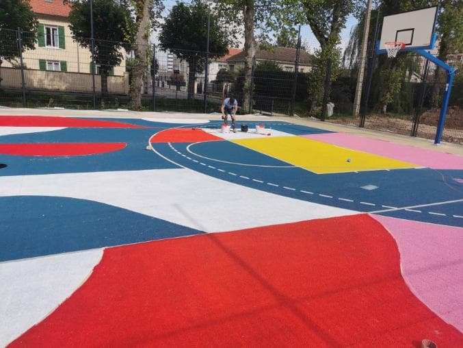 Caparol a souhaité soutenir ce beau projet qui est totalement en lien avec les valeurs de la marque : Performance et Design. Nous avons décidé d’offrir la peinture nécessaire pour designer ce terrain.