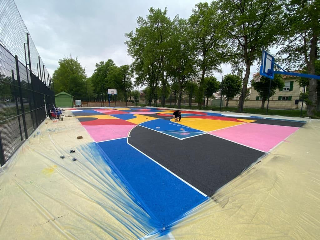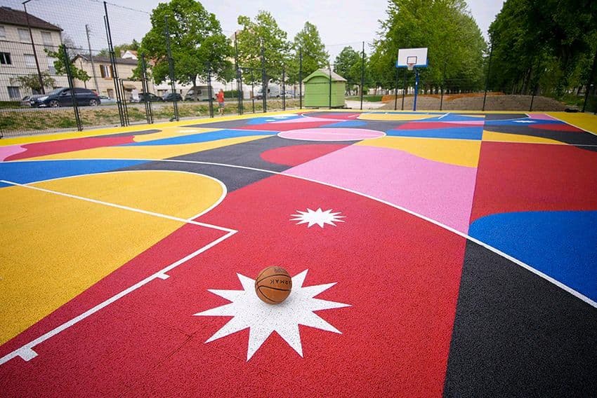 Ce terrain de basket situé dans un quartier prioritaire de Chalons en Champagne s’est transformé en véritable œuvre d’art grâce à Team Courtside/Etendart !