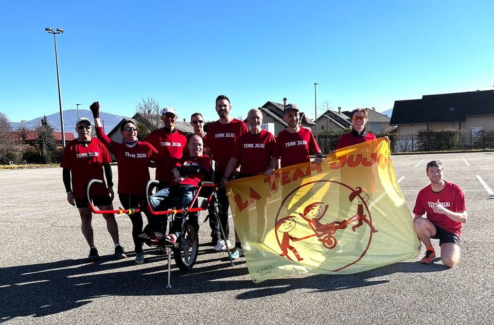 Nous vous en parlions il y a quelques semaines, la team Juju (menée par Julien Grandjean) souhaitait relever le défi de battre le record du monde de distance parcourue en Joëlette en 24h.