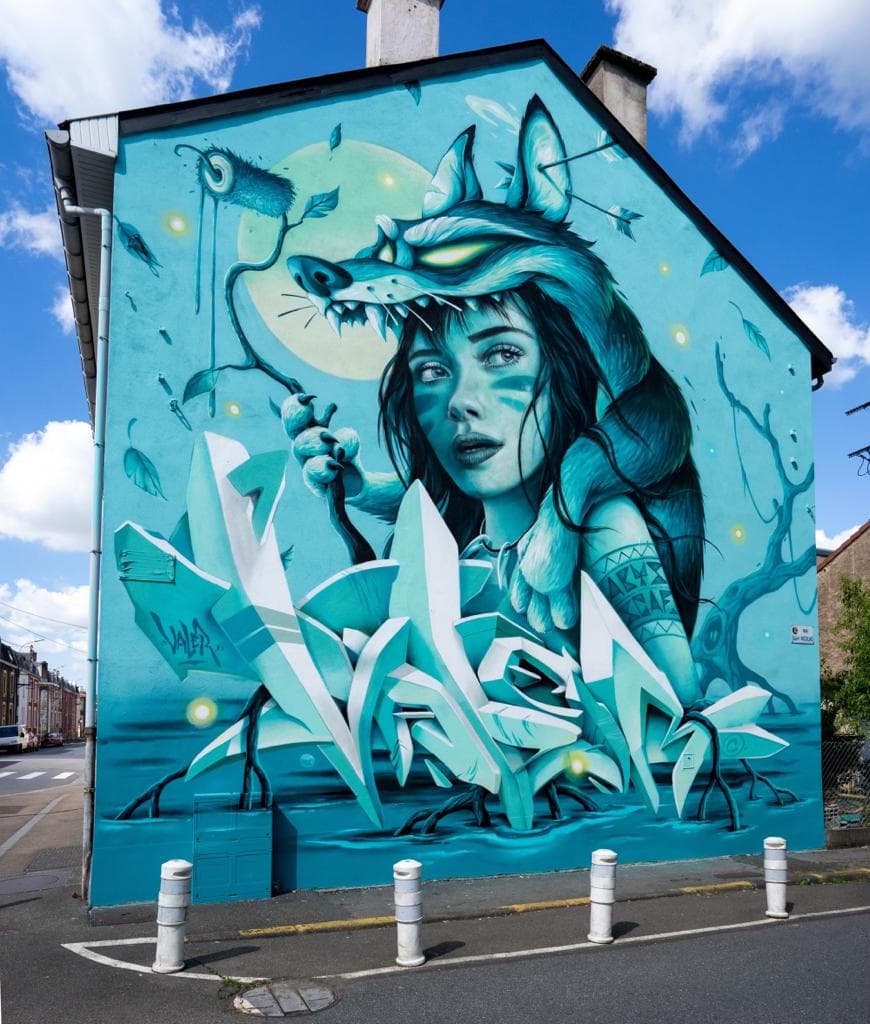 Artistes : Cette fresque est en réalité un mur à 6 mains, ce sont 3 artistes qui ont collaboré afin de la rendre encore plus inoubliable : Abys, Valer et Scaf ont chacun pu mettre leur touche d’originalité.