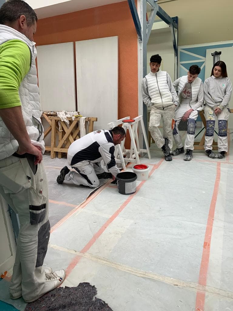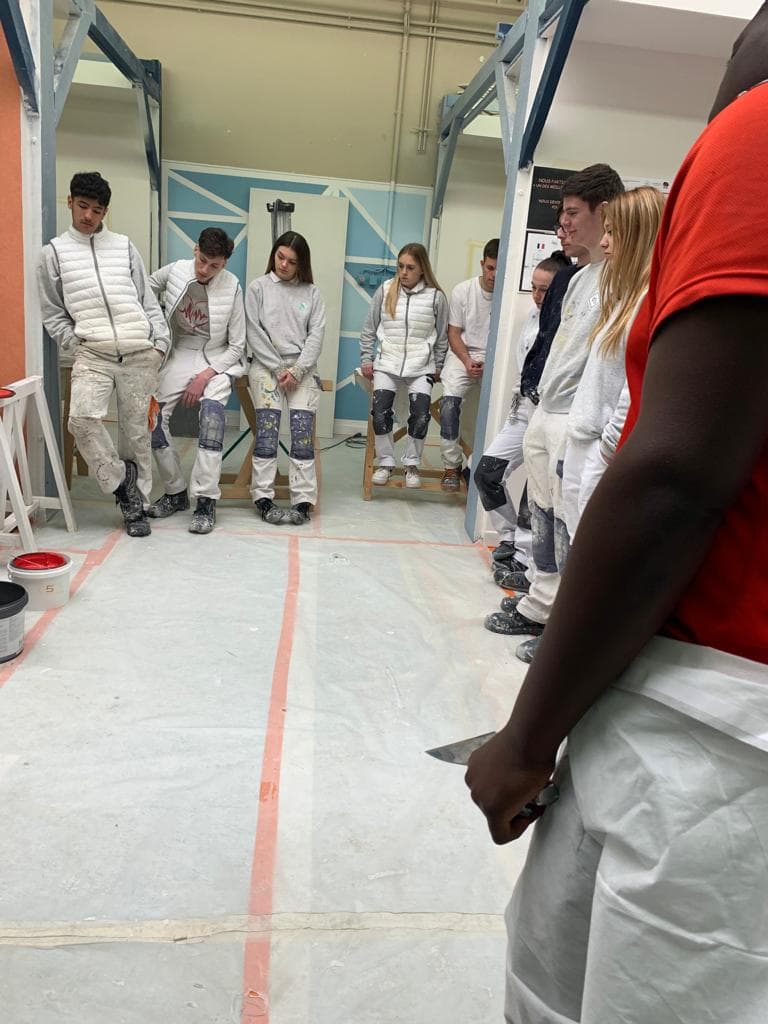 Ci-dessous quelques photos montrant la formation réalisée par notre applicateur démonstrateur en interne, des photos des plaques réalisées par les élèves ainsi que quelques photos de la journée remise des médailles à laquelle a assisté Nicolas Henry, le parrain de ce projet chez Caparol et Cyprien Garcia, directeur commercial Sud Est.
