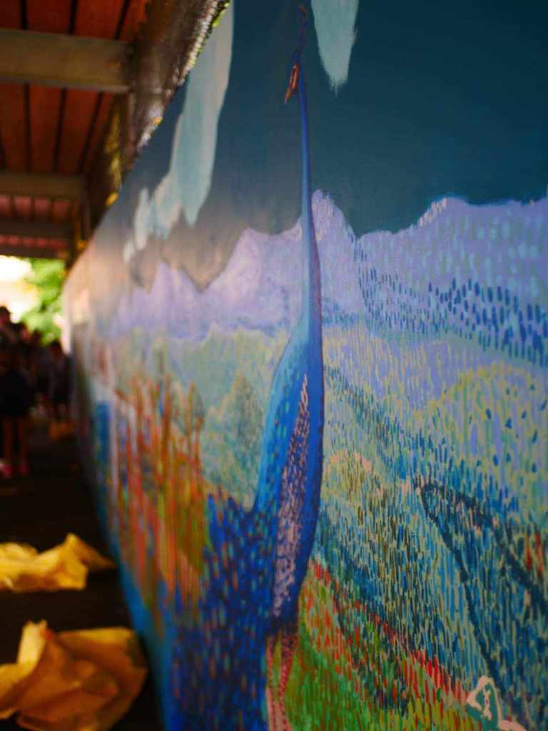 Le 30 juin dernier, à l’occasion de la fête de l’école, chant, danse, poésie et film de présentation ont précédé l’inauguration de la fresque dans la bonne humeur. Les élèves ont pu dévoiler leur travail devant leurs parents et familles.