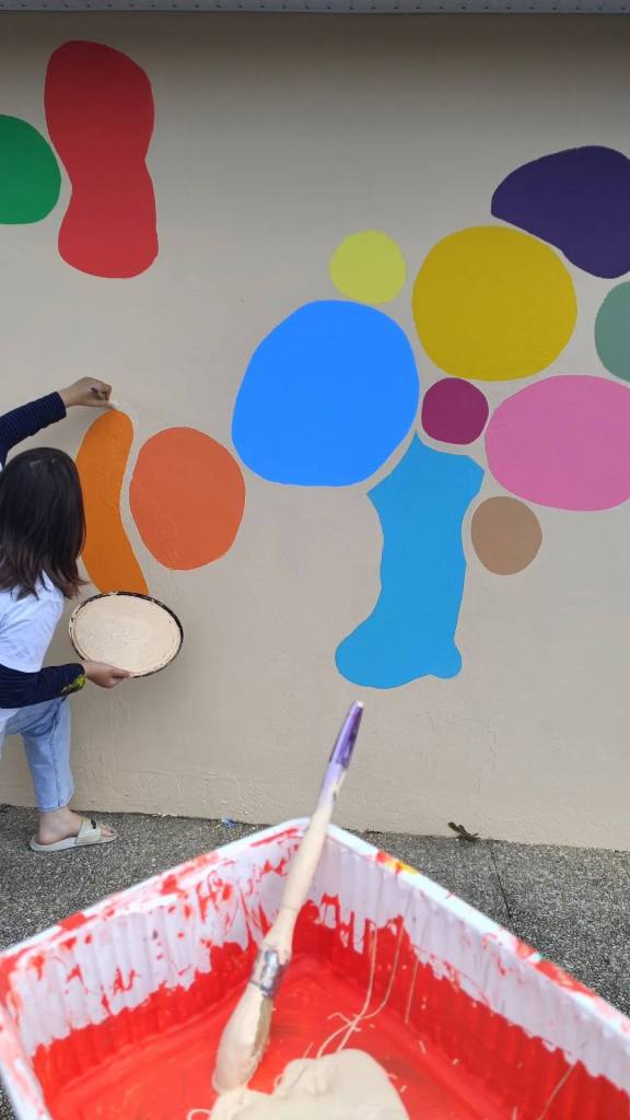 Retrouvez ci-dessous quelques images de la mise en peinture et de la fresque finalisée :