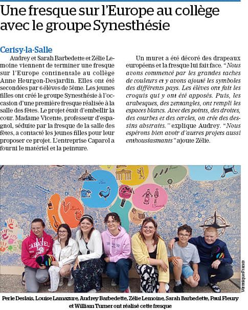 Nous vous parlions il y a maintenant quelques semaines du projet de fresques sur le thème de l’Europe au collège Anne Heurgon-Desjardins situé à Cerisy la salle dans la Manche.