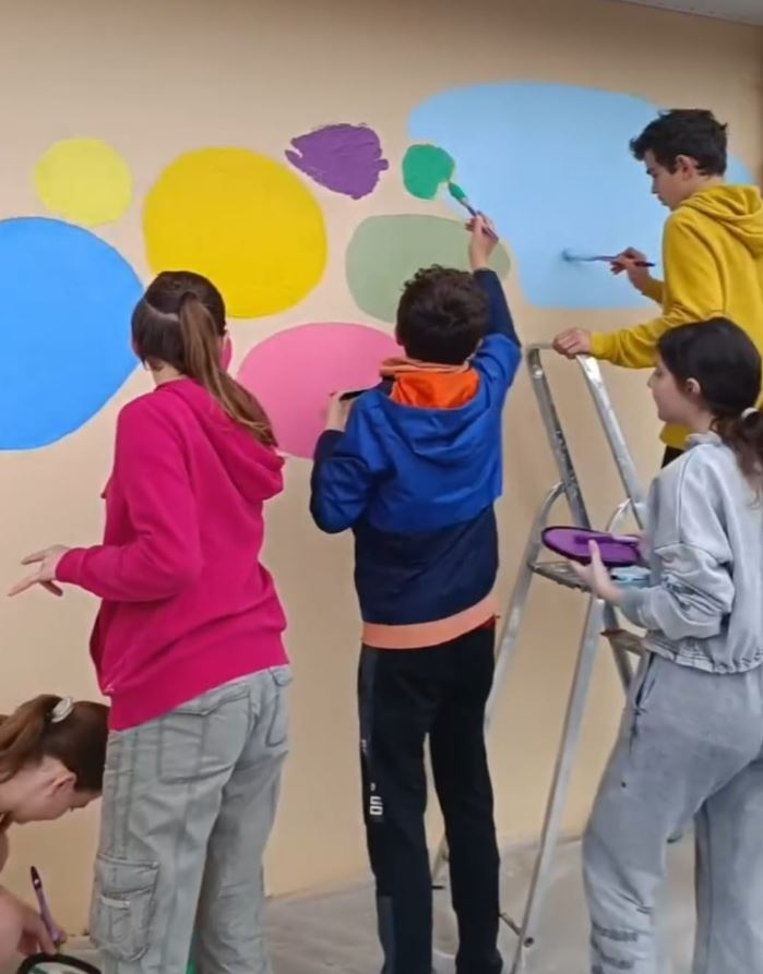 Rappelez-vous, Caparol a souhaité participer en offrant l’ensemble la peinture nécessaire pour la sous couche, la réalisation des fresques ainsi que quelques goodies pour les élèves participants.
