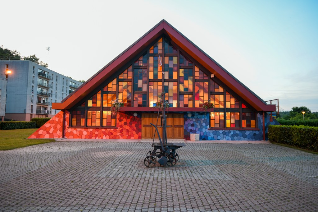 Dans les années 60-70, les verreries de Bagneaux étaient un acteur incontournable de l’industrie verrière européenne. A l’époque, le métier de verrier était synonyme d’avenir. Le village ne pouvait accueillir l’ensemble des ouvriers dans leur petite église. En 1968 les ouvriers ont construit une usine unique en son genre avec une façade en forme de pignon et de nombreux vitraux, ce lieu est particulièrement lumineux. Depuis sa désacralisation en 2010, elle a été renommée « Maison des verriers » et est désormais un lieu culturel de la ville.