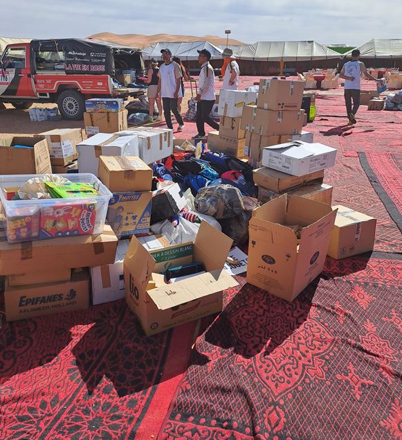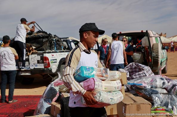 Au travers de ces échanges, j’ai pris la mesure de l’aide que l’on apporte à toutes ces femmes, et ces enfants des villages du désert. Une partie des dons étaient dès le lendemain déjà distribués. Il y a eu énormément de dons cette année, les 126 équipages sont arrivés bien chargés . Nous avions 100kg dans notre 4×4 (dons scolaires, sanitaires l…) dont une partie à été fournie par Caparol. »