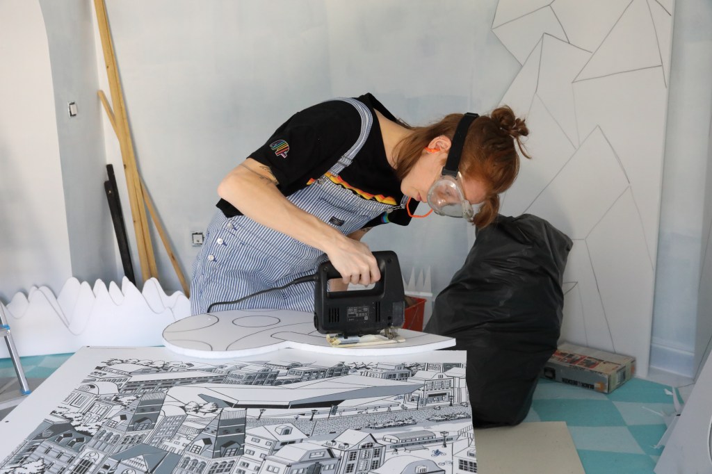 Découpe, collage, peinture, assemblage, … Les Toki ont mis leur talent au service de cet univers immersif pour donner vie aux personnages et au monde imaginés spécialement pour cette exposition éphémère.